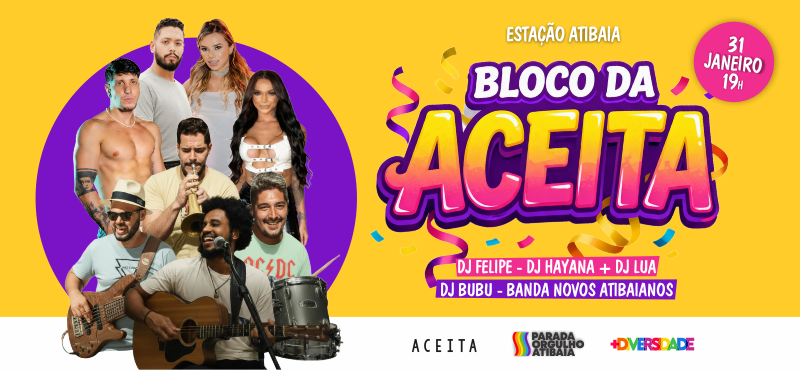 A comunidade LGBTQIAPN+ de Atibaia ganha um novo ponto alto na agenda cultural e festiva da cidade. No dia 31 de janeiro de 2026, a partir das 19h, a Estação Atibaia recebe a estreia do Bloco da Aceita, promovido pelo coletivo Festa Aceita.