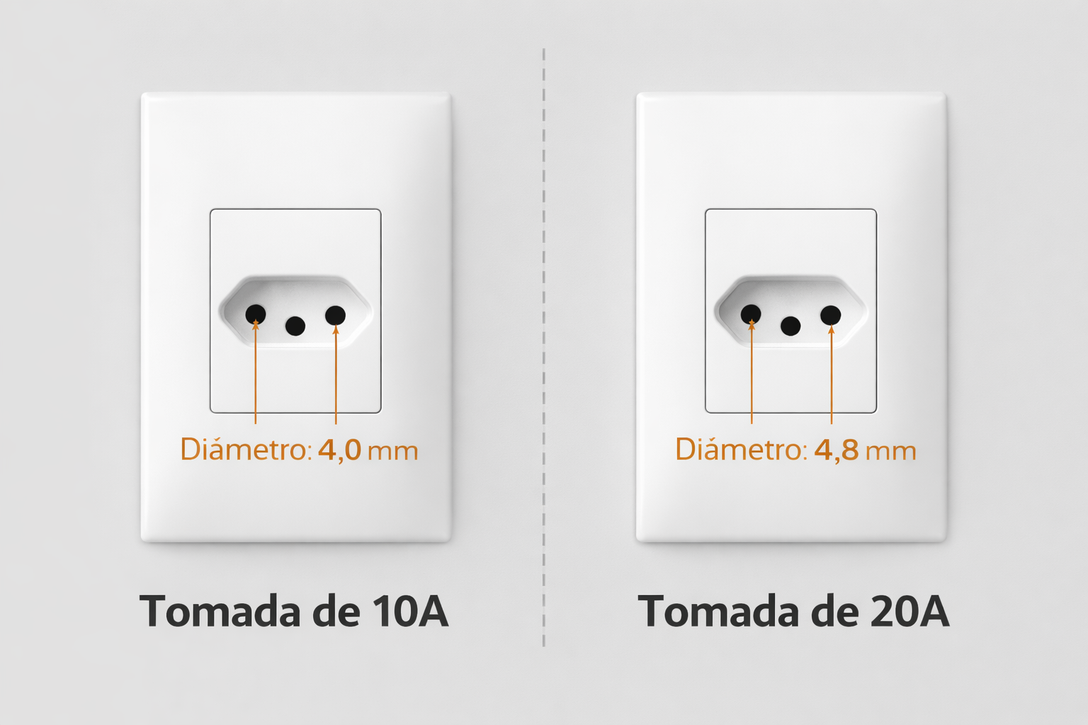 Essa diferença impede que um plugue de 20A seja conectado em uma tomada de 10A, evitando sobrecarga. No entanto, o uso inadequado ainda é comum em instalações antigas ou com produtos de baixa qualidade, o que reforça a importância de escolher fabricantes confiáveis.